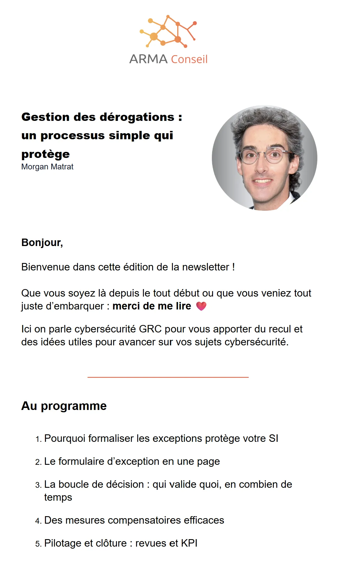CISO externalisé. J'aide les entreprises à poser un cadre de sécurité solide — et à le prouver.